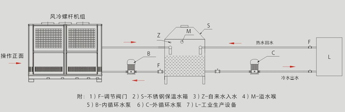 應(yīng)用環(huán)境: 主要為模具、光纖光纜水槽、工業(yè)爐、制藥機械、點焊機等行業(yè)提供循環(huán)冷卻水,能夠有效地控制和調(diào)節(jié)冷卻水溫度(3℃~35℃),讓機械設(shè)備產(chǎn)生熱量的部分在運轉(zhuǎn)過程中能夠保持所需要的恒定溫度冷卻設(shè)備產(chǎn)生的高溫。從而大大提高機械設(shè)備的使用壽命和工作效率! 一、風冷型冷水循環(huán)機也叫風冷式冷水機組,主要區(qū)別就是冷水循環(huán)機不帶水箱(水箱外置),通過板式換熱器或者殼管式換熱器來給水箱內(nèi)的水循環(huán)降溫。 產(chǎn)品特點Features: 1、采用國際最先進的渦旋式或活塞式壓縮機,電器及制冷系統(tǒng)原器件全部為世界著名品牌; 2、冷卻水泵及管路系統(tǒng)全部采用不銹鋼材質(zhì),確保水質(zhì)更潔凈,使用壽命更長久、制冷效果更穩(wěn)定; 3、風冷冷凝器全部采用進口風機及大風量低噪音軸流設(shè)計,噪音更低、換熱效率更高; 4、風冷系列無需配置冷卻水塔及冷卻水泵,安裝簡單,移動方便,適合生產(chǎn)場地比較緊缺的環(huán)境使用; 5、機組采用進口高精度電子顯示器,內(nèi)置P.I.D 自動演算功能,啟動延時功能,控溫精度在±0.5℃范圍內(nèi),且控制溫度范圍在3℃~40℃之間; 6、為保證使用安全,機組內(nèi)置漏電保護器、相位保護、過載保護、電流保護;系統(tǒng)安裝了高、低壓保護傳感器,為防止缺水或循環(huán)水系統(tǒng)內(nèi)部結(jié)冰,機組安裝了流量開關(guān)和低液位保護裝置。