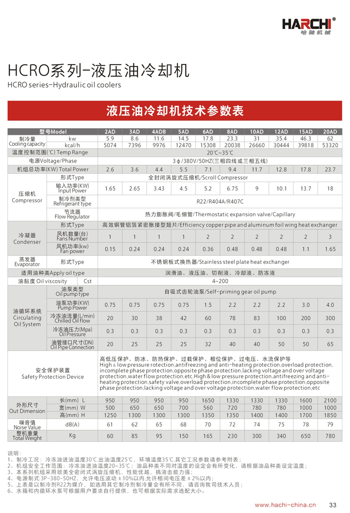 1、制冷能力是在環(huán)境溫度35℃,進(jìn)油溫度35℃,出油溫度30℃,油品為ISO VG32條件下測得。 2、用戶在選擇油冷機時,必須選擇油液需控制的溫度范圍(1)18℃-25℃ (2)25℃-35℃ (3)35℃-45℃ (4)45℃以上。本公司推薦液壓油合理的溫度控制范圍為35℃-45℃. 3、油冷機吸油口必須用硬管連接,且加裝過濾器。 4、吸油管長度不應(yīng)超過1.5米,如超出必須加粗吸油口。 5、油冷機吸油口應(yīng)靠近設(shè)備回油口,出油口應(yīng)靠近設(shè)備供油口。 6、如吸油口太長,需將油泵與機組分離。 7、以上機組使用環(huán)境為5~42℃,42℃以上屬高溫機組,外形尺寸及相關(guān)參數(shù)會有所變更,請選型時注意。 8、參數(shù)表內(nèi)為本公司標(biāo)準(zhǔn)機型,本公司接受客戶特殊訂貨。 適用種類: ◇ CNC車床、銑床、磨床、拉床 ◇ CNC旋轉(zhuǎn)臺、油壓機、木工雕刻機 ◇ CNC立式/臥式加工中心、綜合切削加工中心 ◇ 高速機械主軸、電主軸、靜壓(動靜壓)主軸 ◇ 各種機械的液壓站及潤滑系統(tǒng) ◇ 放電加工設(shè)備.
